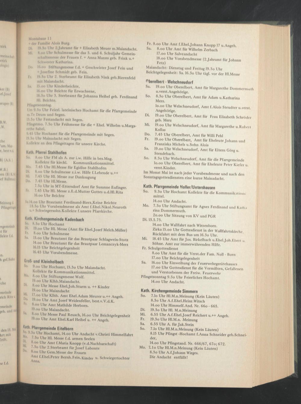 Do. 7.45 Uhr Oberelbert, Amt für Willi Fehl Fr. l9,oo Uhr Oberelbert, Amt für Eheleute Johann und Franziska Michels u.Sohn Alois Sa, 19,oo Uhr Welschneudorf, Amt für Eltern Görg u. Stendebach.