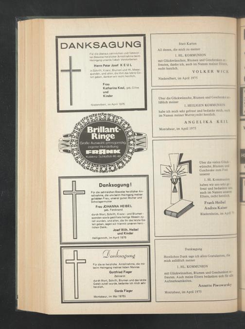 durch Wort, Schrift, Kranz - und Blumen - spenden sowie gestiftete heilige Messen zuteil wurden, und allen, die ihr das letzte Geleit gaben, sagen wir hiermit unseren herz - liehen Dank.