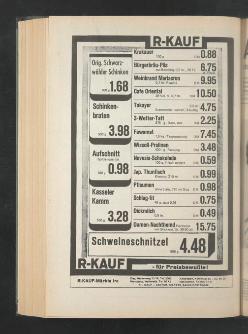 Diez, Heckenwag 11-14, Tal. 2063 Kaliartatch, .Koblenzer Str., Tel. 66 30 Montabaur, Wallitraße, Tal. 50 42 Hahnitättan, Telefon 77 31 R - KAUF - CENTER, SELTERS, BAHNHOFSTRASSE