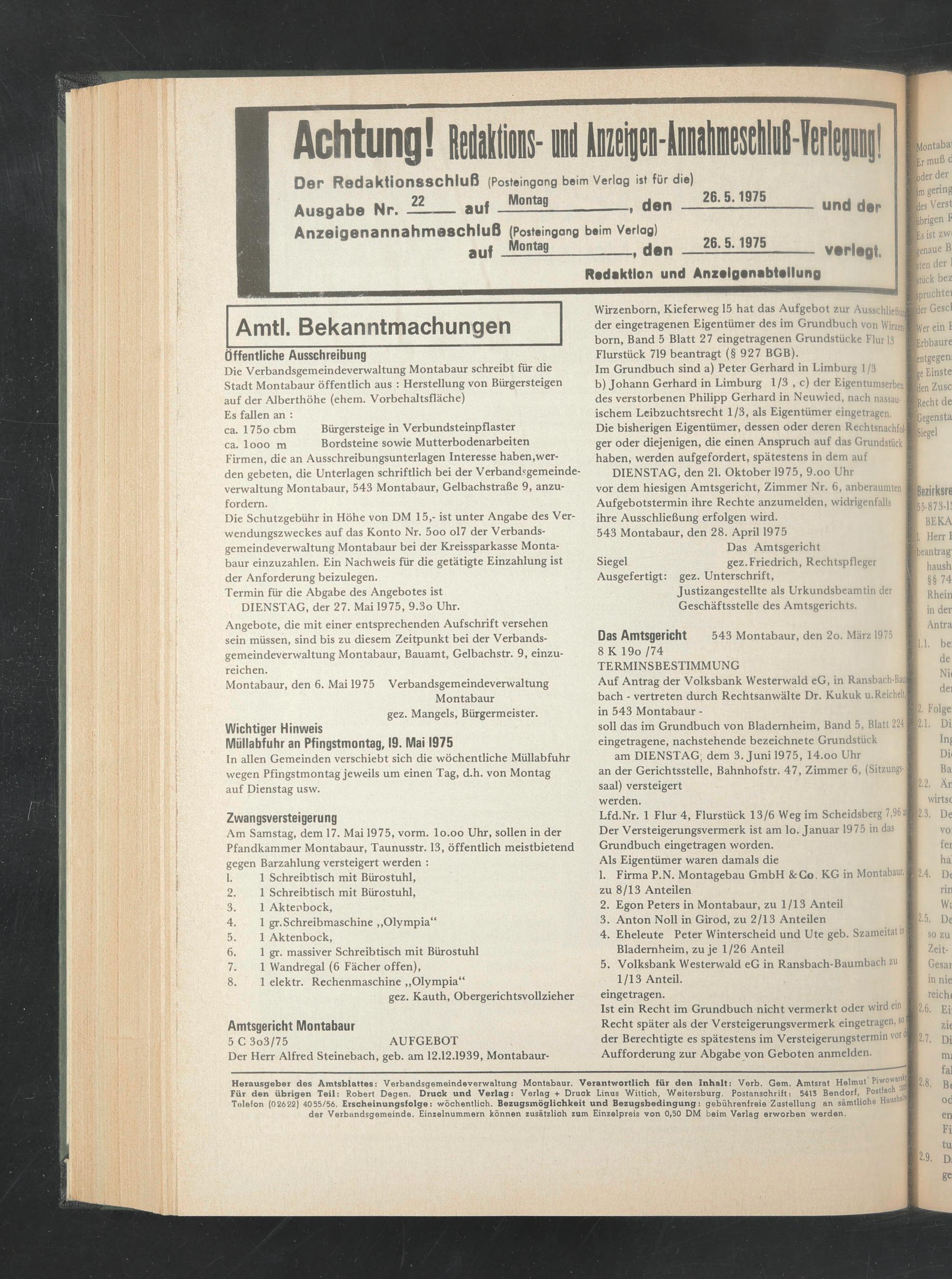 Montabaur, den 6. Mai 1975 Verbandsgemeindeverwaltung