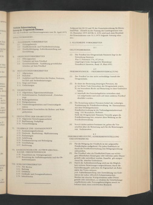 über das Friedhofs- und Bestattungswesen vom 26. April 1975