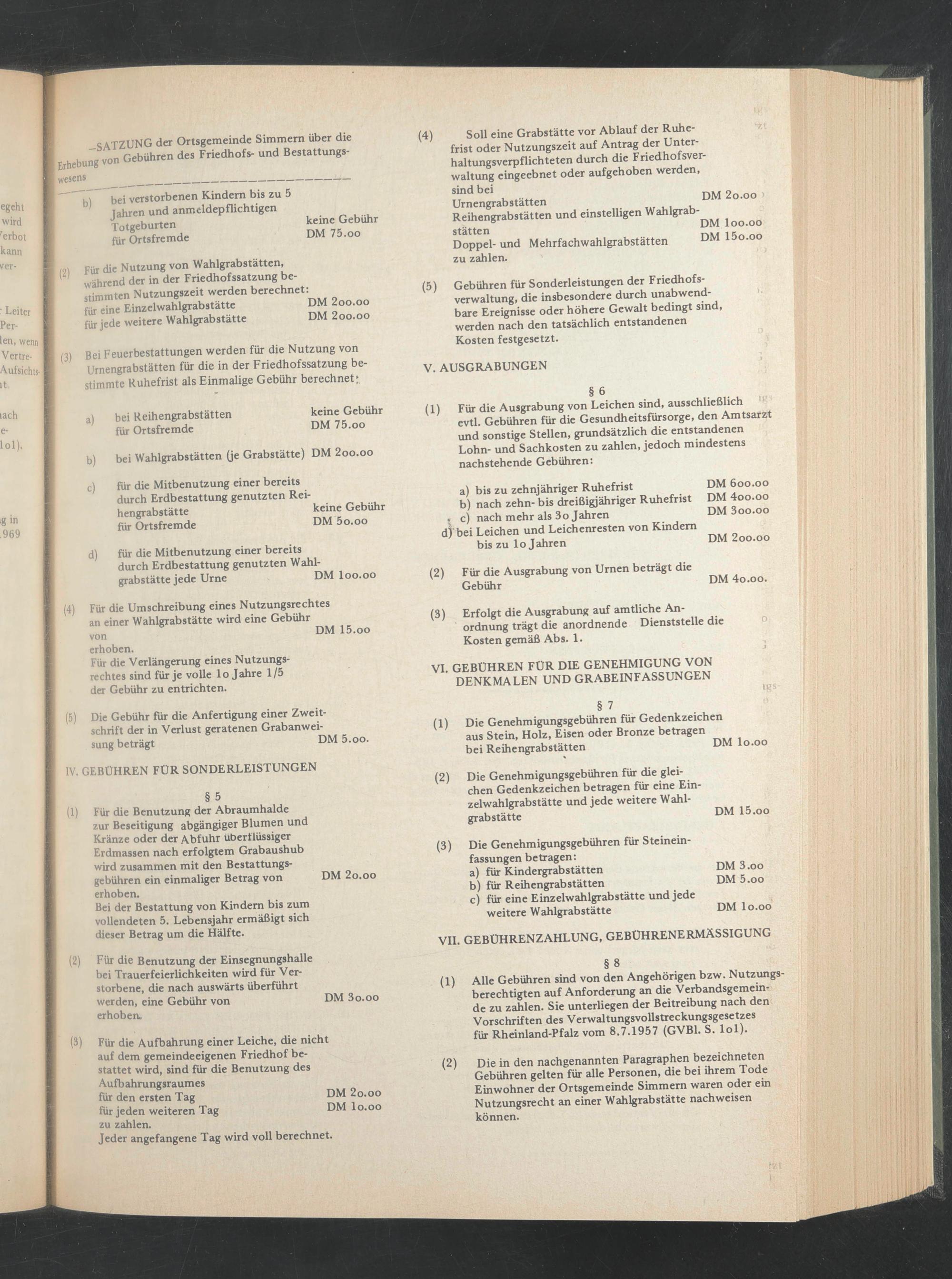 (2) Die in den nachgenannten Paragraphen bezeichneten Gebühren gelten für alle Personen, die bei ihrem Tode Einwohner der Ortsgemeinde Simmem waren oder ein Nutzungsrecht an einer Wahlgrabstätte nachweisen können.