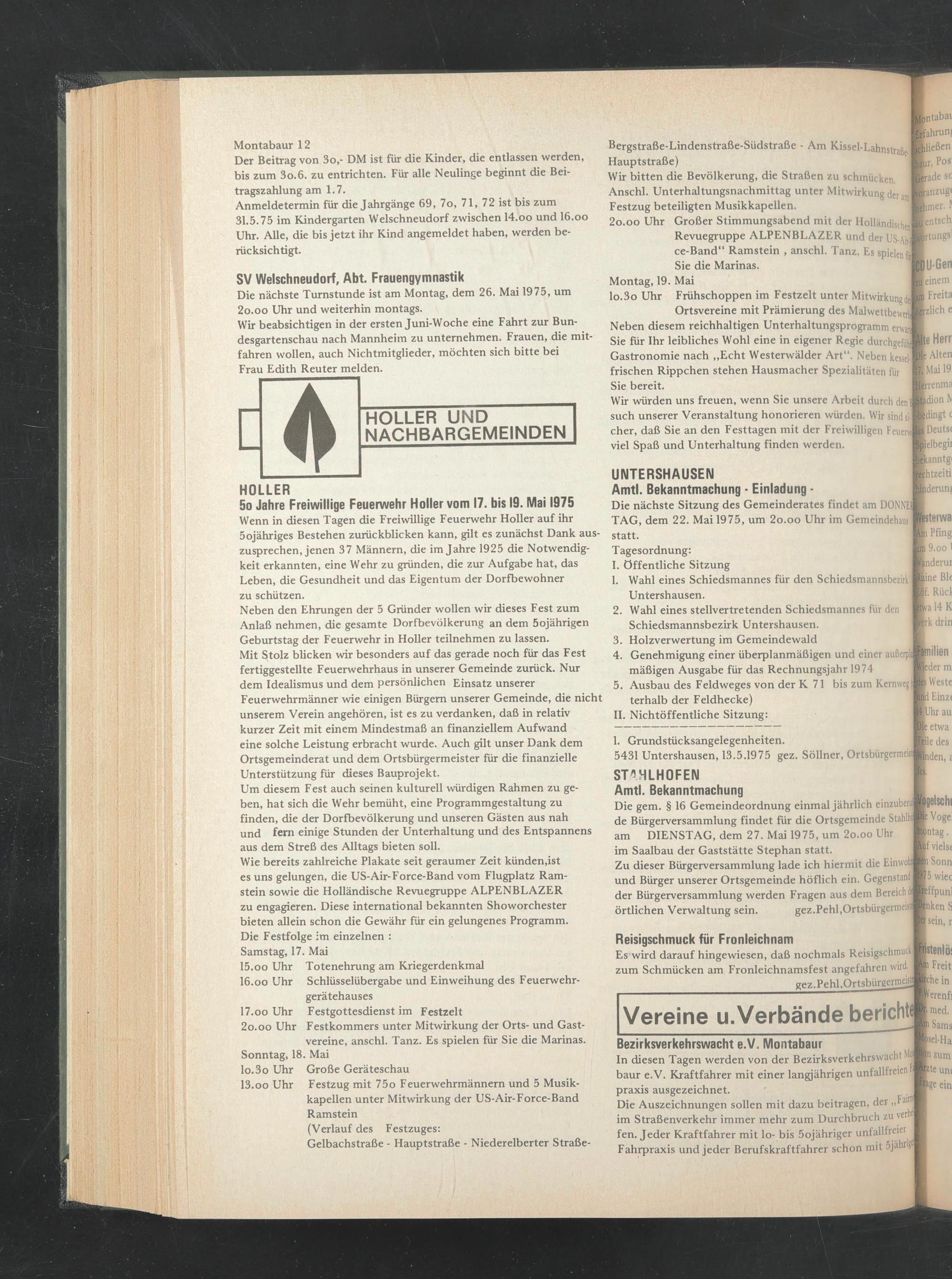 5431 Untershausen, 13.5.1975 gez. Söllner, Ortsbürgermeistj