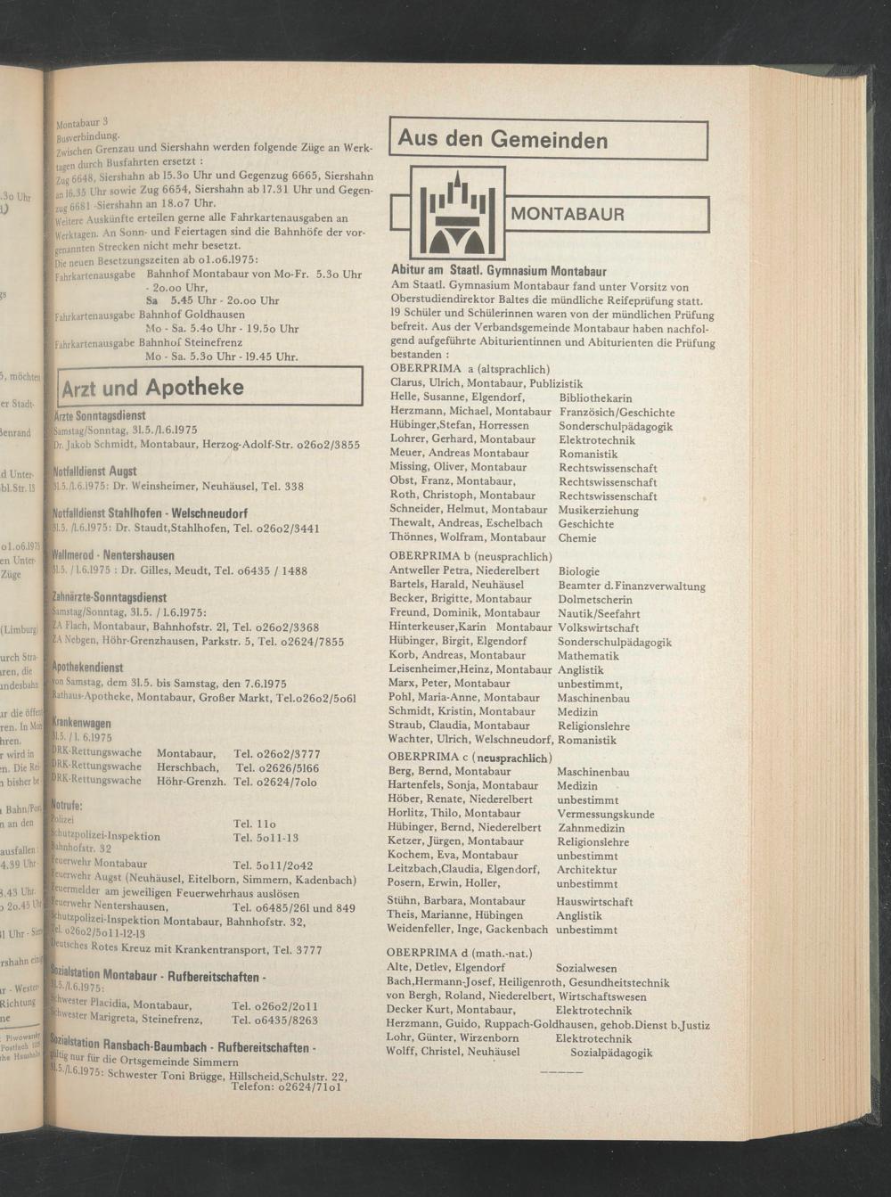 11.5. /1.6.1975: Dr. Staudt,Stahlhofen, Tel. o26o2/3441