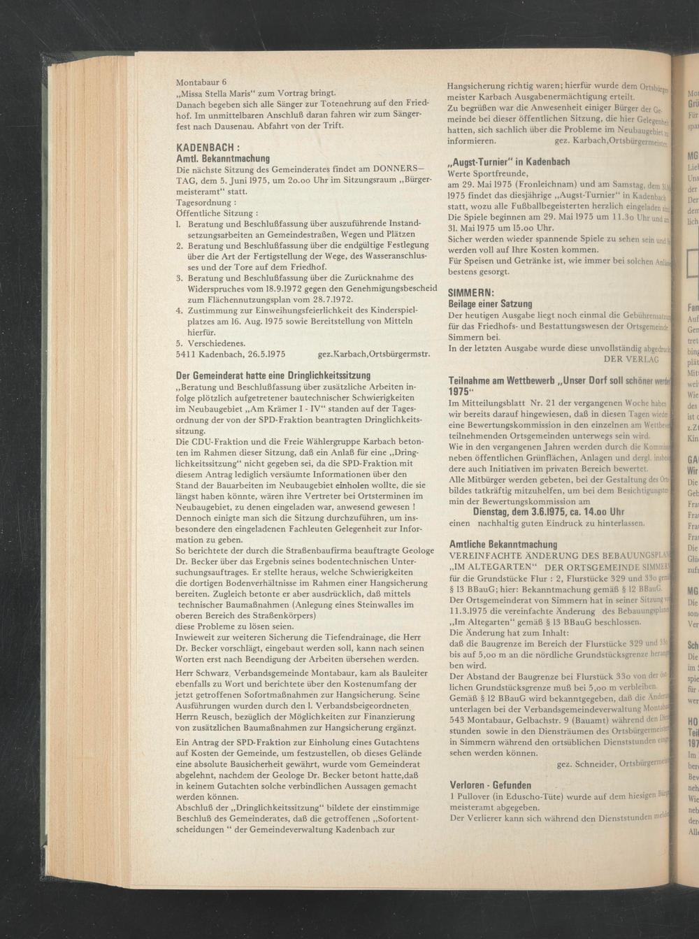 5411 Kadenbach, 26.5.1975 gez.Karbach,Ortsbürgermstr.