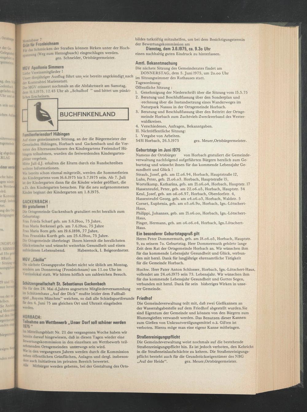 5431 Horbach, 26.5.1975 gez. Meuer,Ortsbürgermeister.