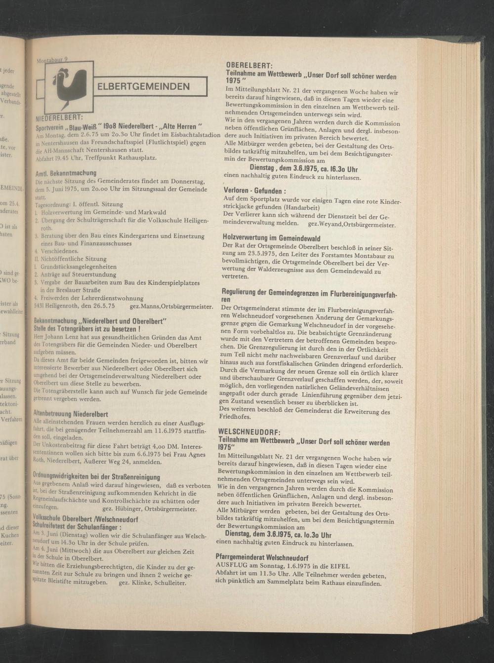 Der Rat der Ortsgemeinde Oberelbert beschloß in seiner Sitzung am 23.5.1975, den Leiter des Forstamtes Montabaur zu bevollmächtigen, die Ortsgemeinde Oberelbert bei der Verwertung der Walderzeugnisse aus dem Gemeindewald zu vertreten.