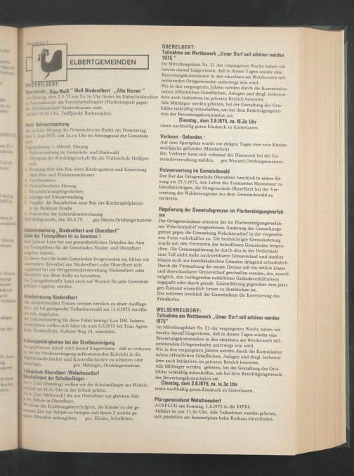 Der Verlierer kann sich während der Dienstzeit bei der Gemeindeverwaltung melden. gez.Weyand,Ortsbürgermeister.