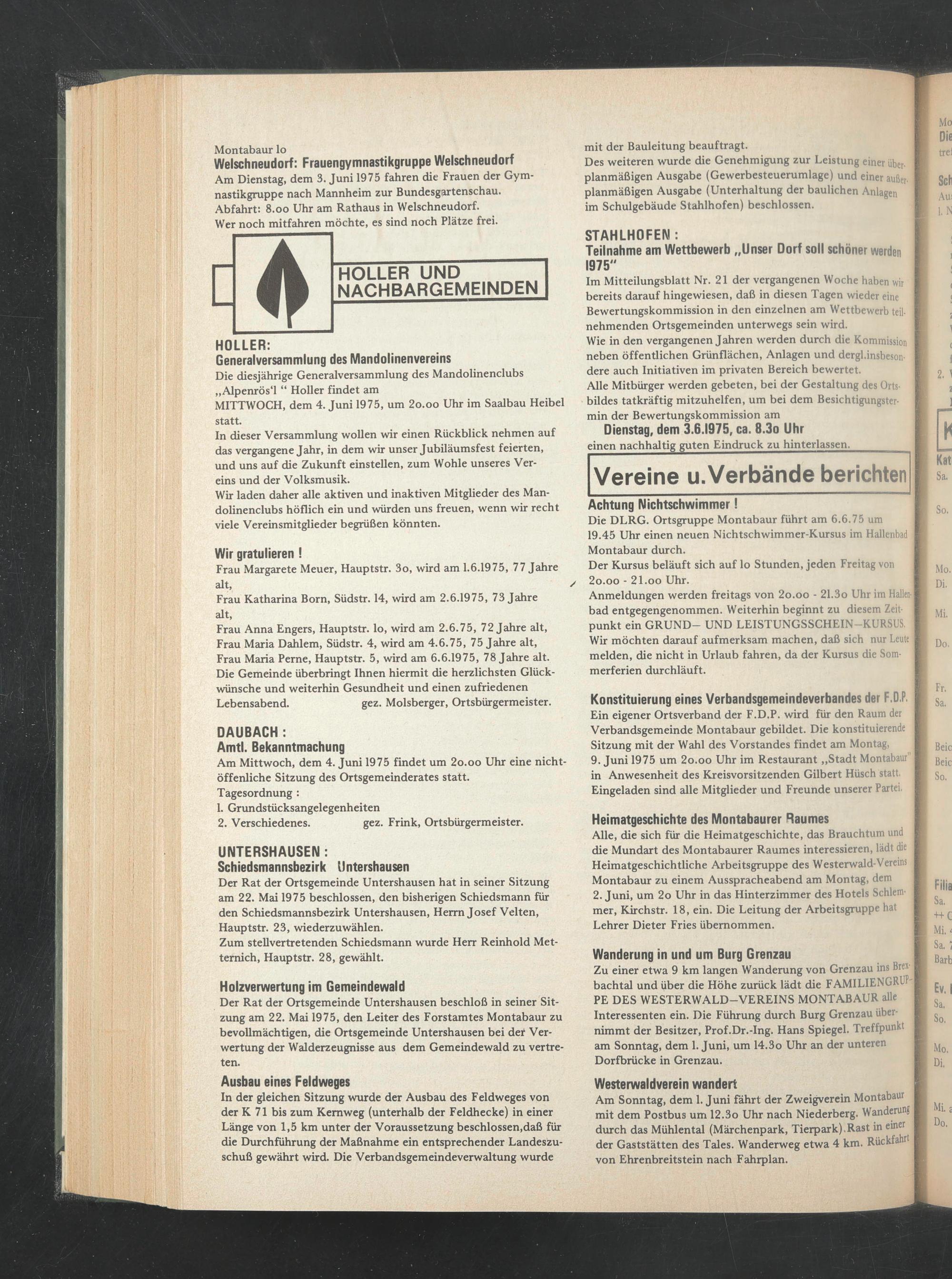 Am Mittwoch, dem 4. Juni 1975 findet um 2o.oo Uhr eine nicht- öffenliche Sitzung des Ortsgemeinderates statt.