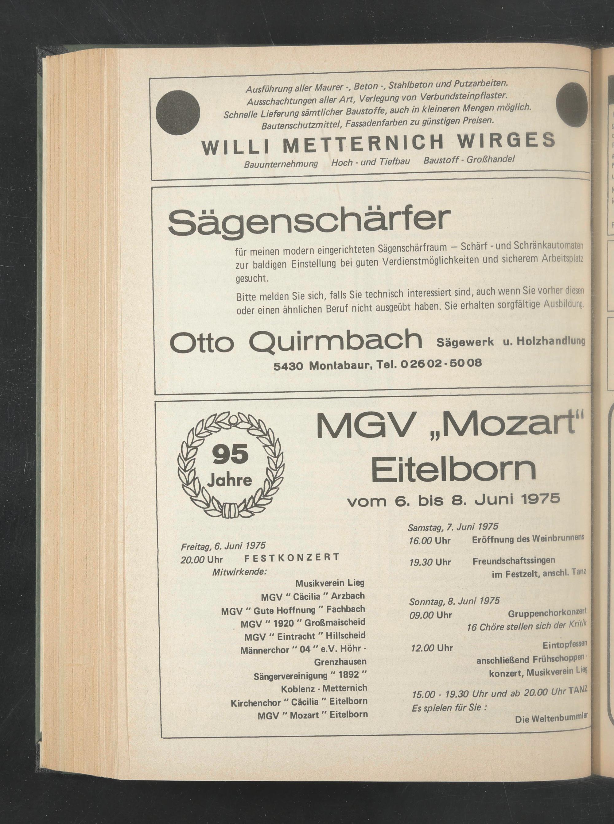Sonntag, 8. Juni 1975 09.00 Uhr Gruppenchorkonzert