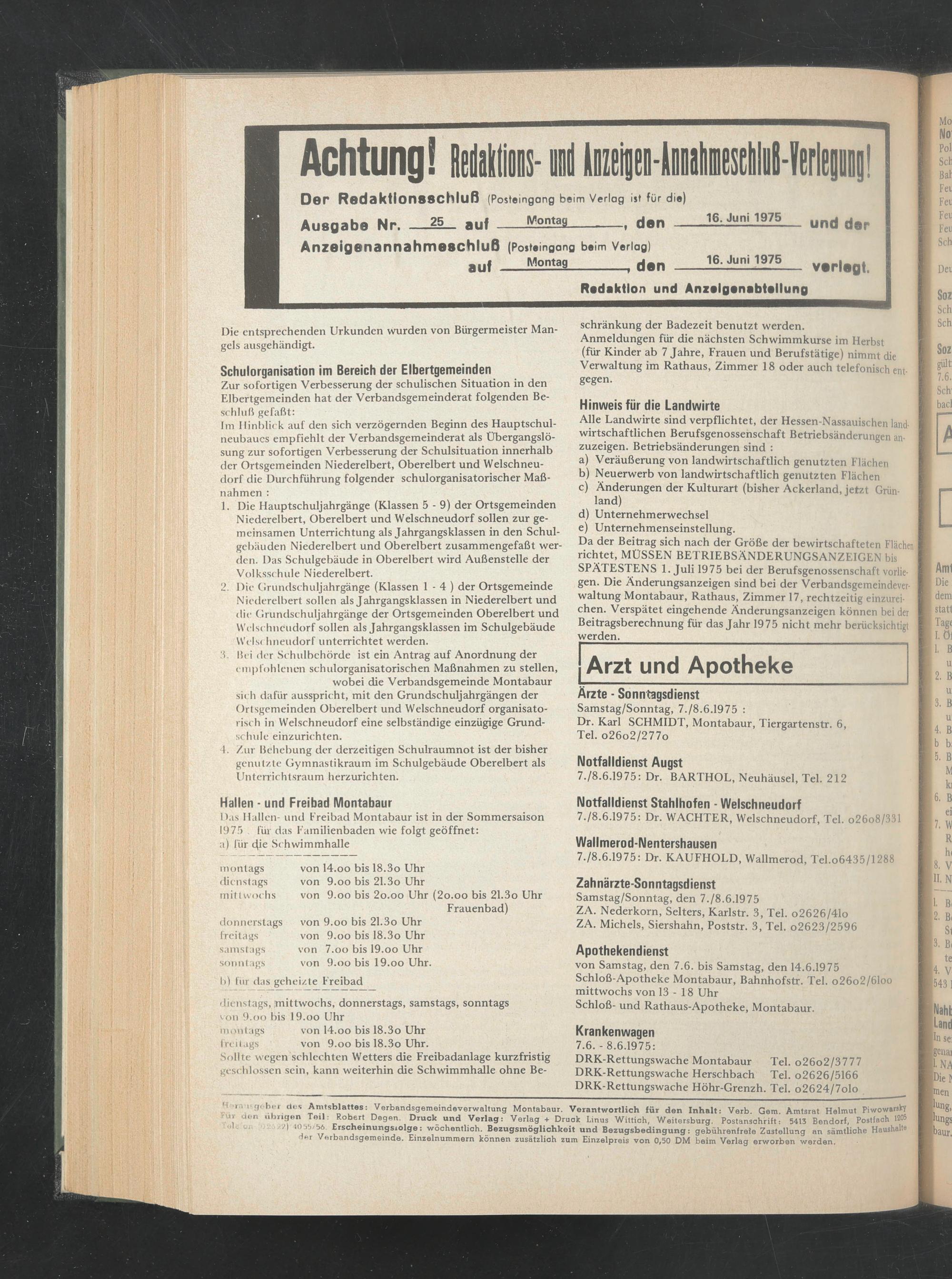 7./8.6.1975: Dr. WÄCHTER, Welschneudorf, Tel. o26o8/331
