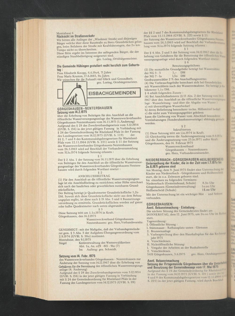 5431 Görgeshausen, 3.6.1975 gez. Herz, Ortsbürgermeistei-