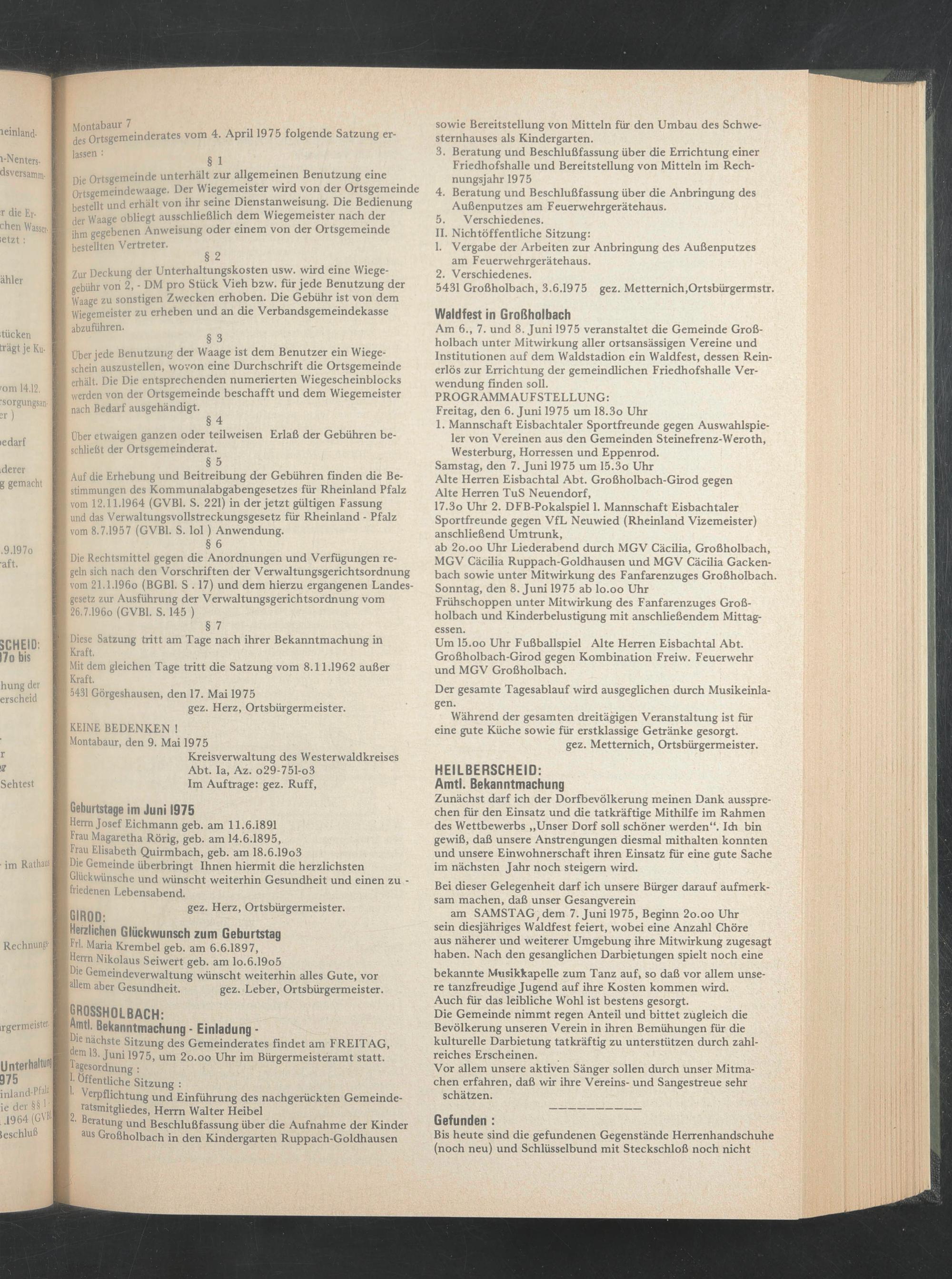 5431 Großholbach, 3.6.1975 gez. Metternich,Ortsbürgermstr.