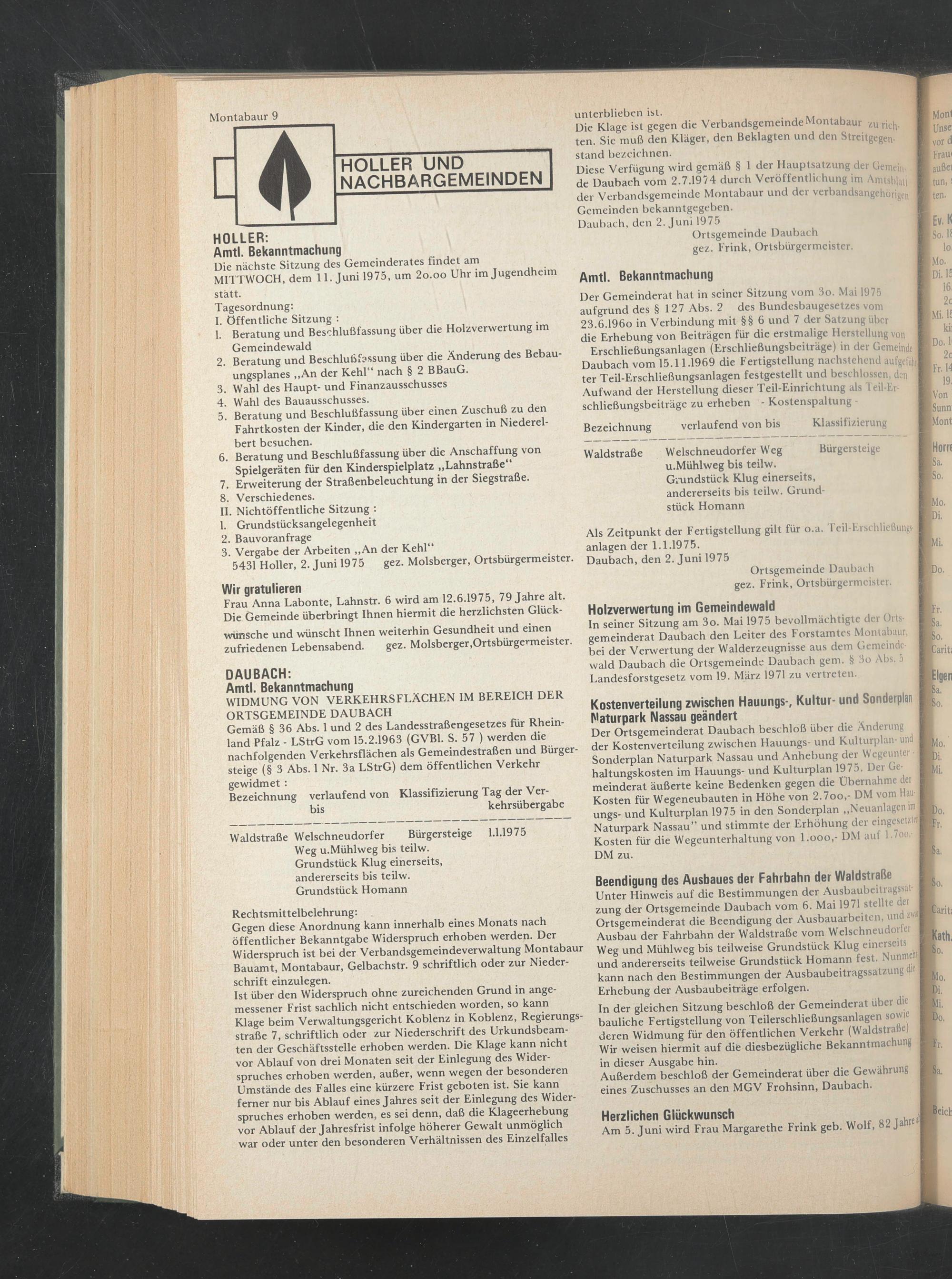 5431 Holler, 2. Juni 1975 gez. Molsberger, Ortsbürgermeister.