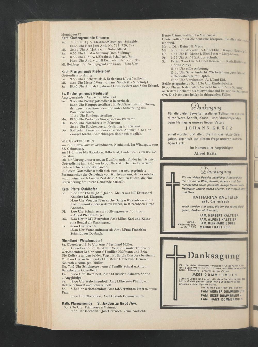 So. 9.3o Uhr Hochamt als 2. Seelenamt f.Josef Wilhelmi Mi. 8.oo Uhr Messe f.Verst. d.Fam. Nitsch (1. - 3. Schulj.)