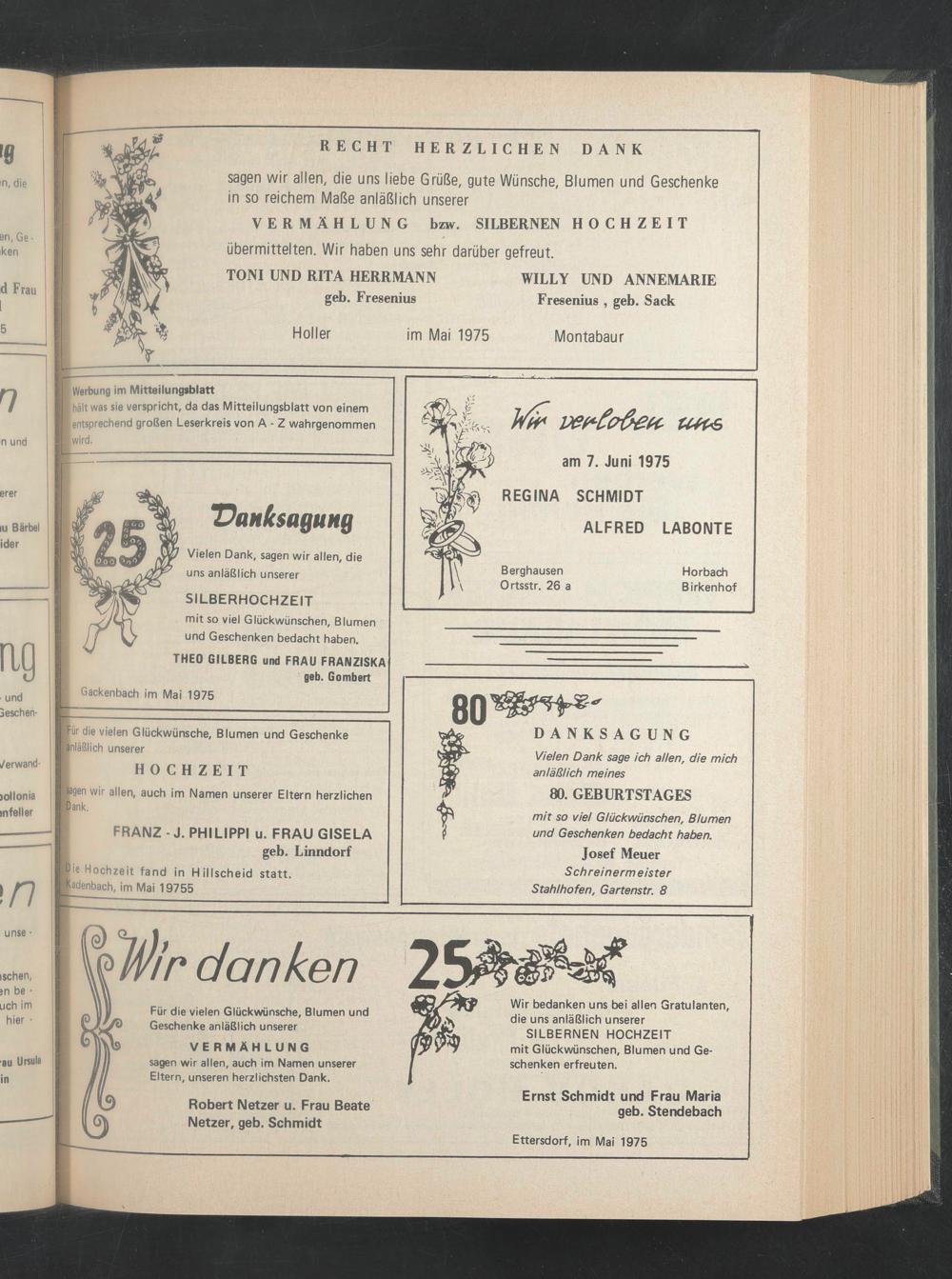 )ie Hochzeit fand in Hillscheid statt, fadenbach, im Mai 19755