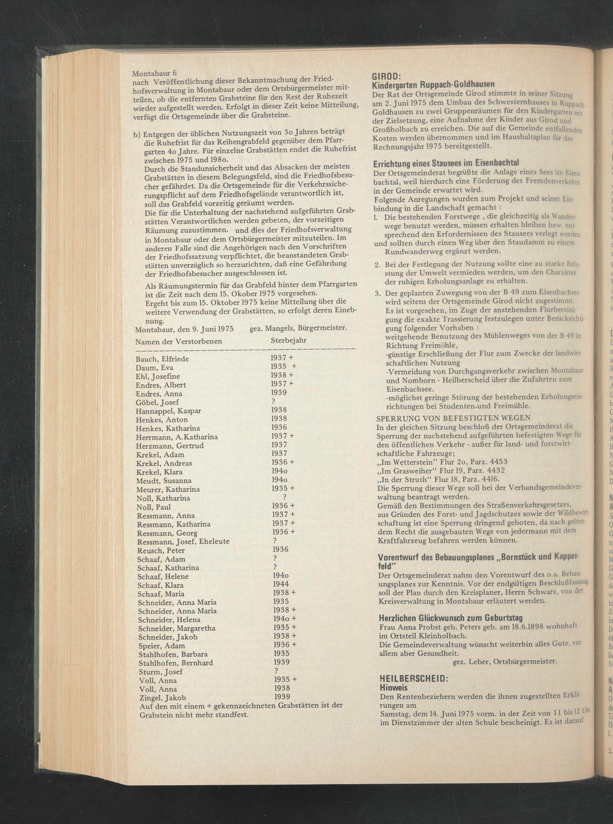 Montabaur, den 9. Juni 1975