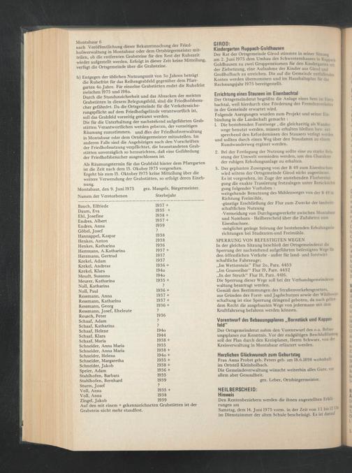 Als Räumungstermin für das Grabfeld hinter dem Pfarrgarten ist die Zeit nach dem 15. Okober 1975 vorgesehen.