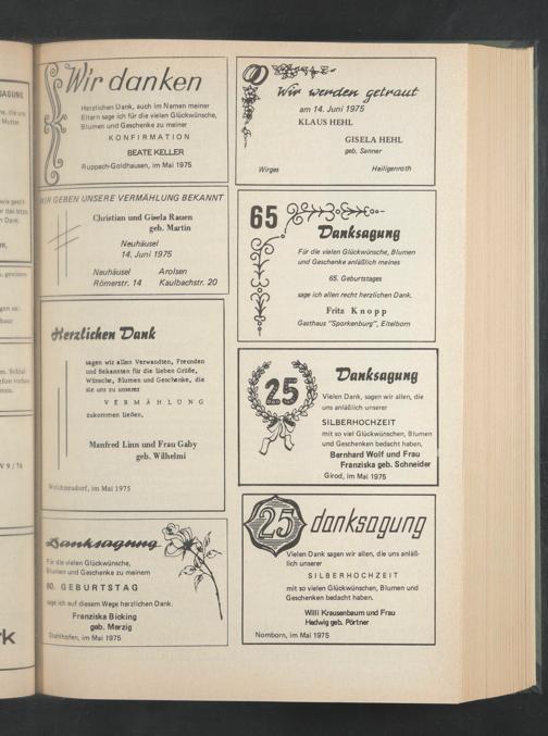 «gen wir allen Verwandten, Freunden und Bekannten für die lieben Grüße, Wünsche, Blumen und Geschenke, die sie uns zu unserer
