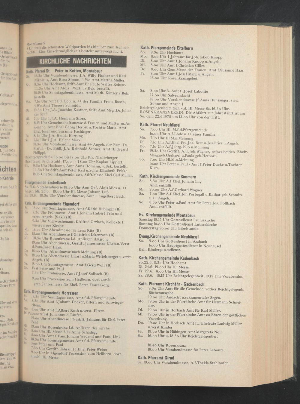 Beichtgelegenheit: tägl. v.d. Hl. Messe Sa. 16.3o Uhr. ROSENKRANZVEREIN: Die Abfahrt zur Jahresfahrt ist am So. dem 22.6.1975 um 13.oo Uhr von der Trift.