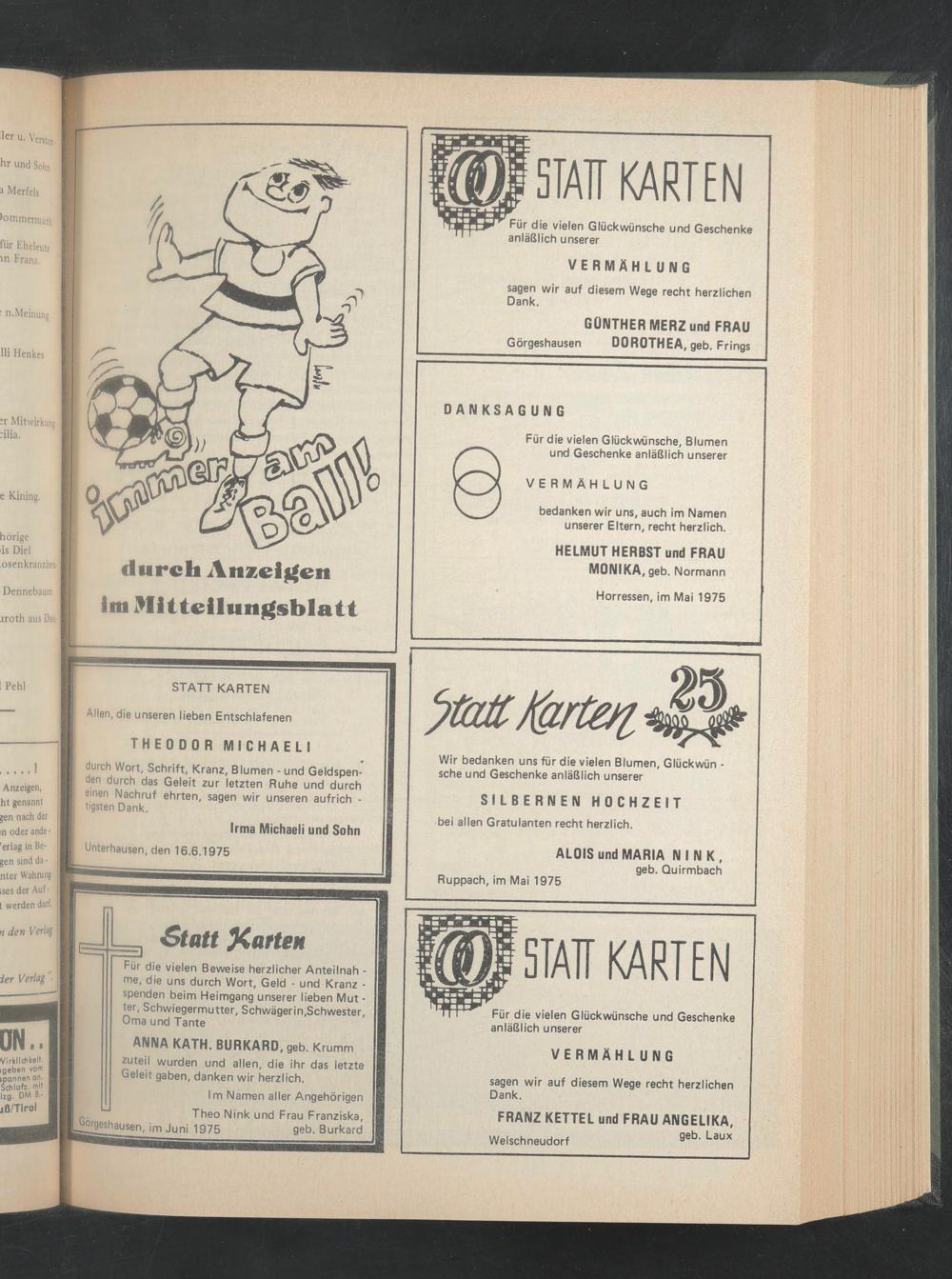 durch Anzeigen im Mitteilungsblatt
