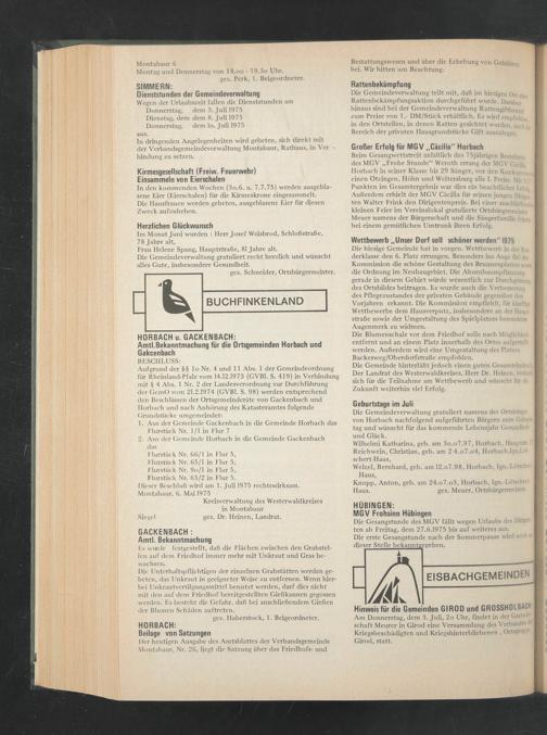 Die Gesangstunde des MGV fällt wegen Urlaubs des Dirigenten ab Freitag, dem 27.6.1975 bis auf weiteres aus.