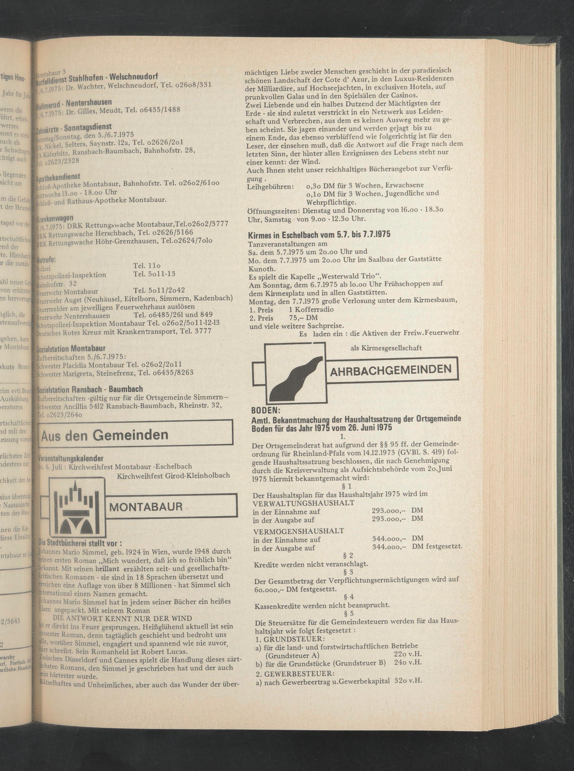 1/6 7.1975: Dr. Gilles, Meudt, Tel. o6435/1488