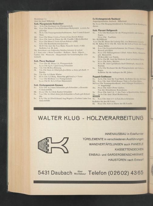 Vor der Abendmesse Rosenkranz Sa. 19.oo Uhr Amt f.d. ++ des Turn- u.Sportvereins Ahrbach So. lo.3o Uhr Amt f.Karl Boddenberg