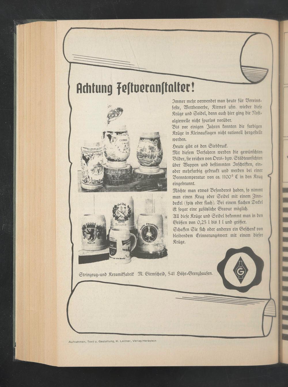 Aufnahmen, Text u. Gestaltung, K. Leitner, Verlag Herbstein
