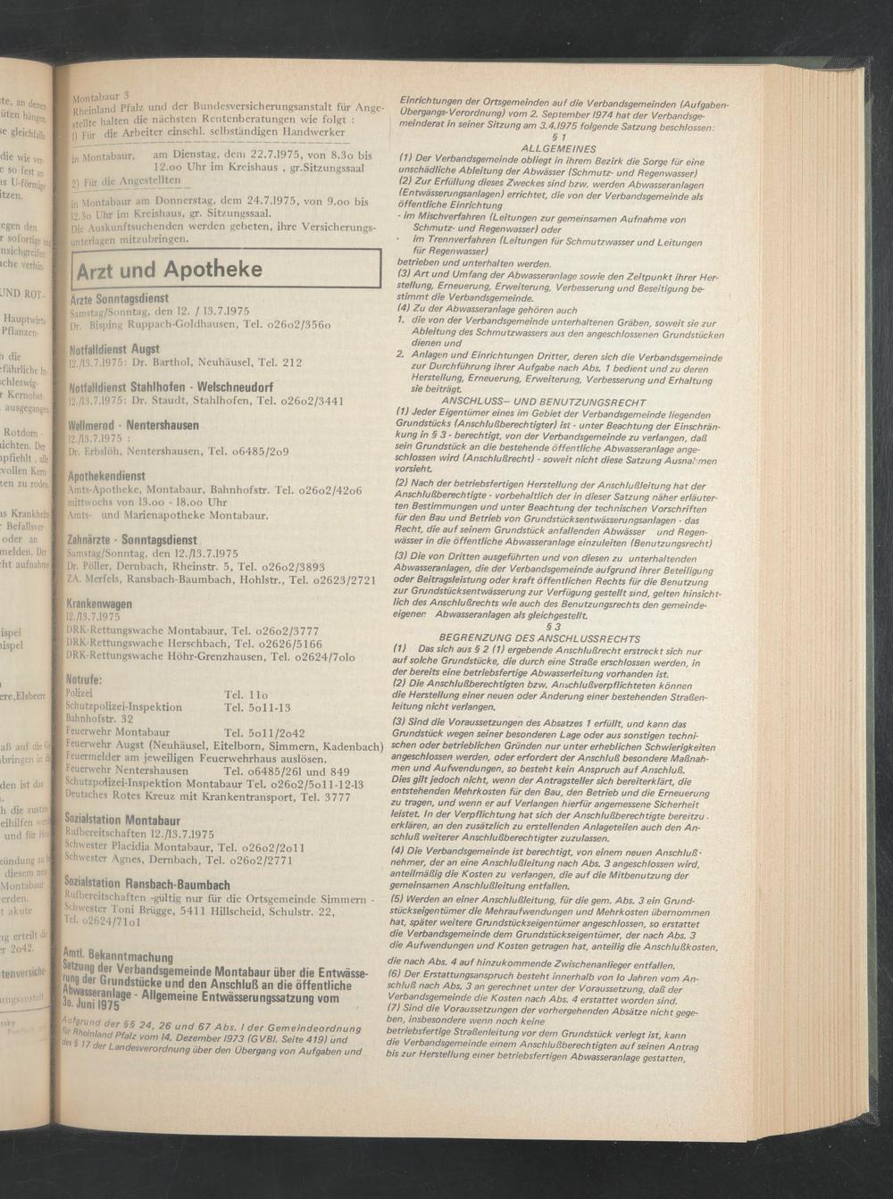 ) 12./13.7.1975: Dr. Staudt, Stahlhofen, Tel. o26o2/3441