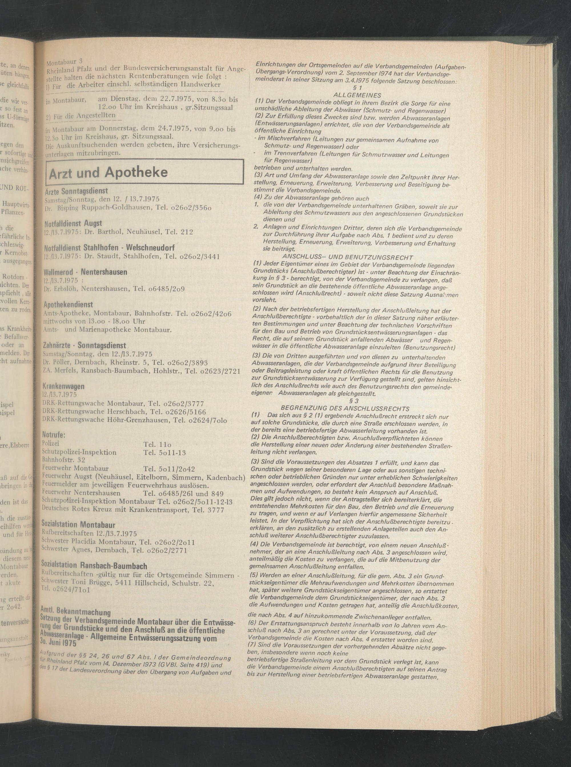 | Rufbereitschaften 12. A3.7.1975 I Schwester Placidia Montabaur, Tel. o26o2/2oll I Schwester Agnes, Dernbach, Tel. o26o2/2771