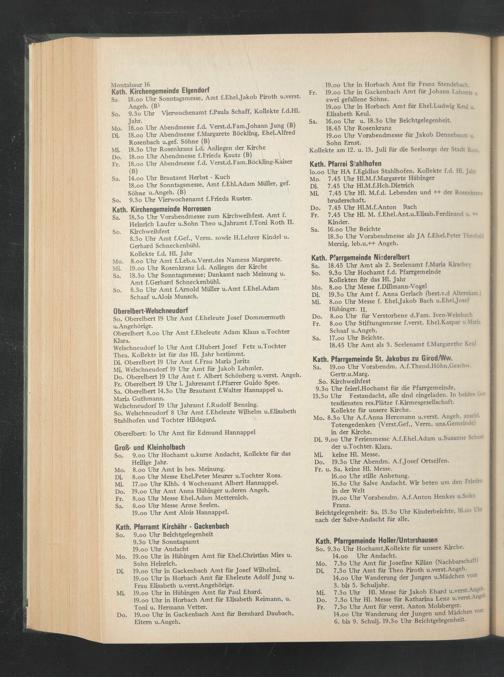 Do. Oberelbert 19 Uhr Amt f. Albert Schönberg u.verst. Angeh. Fr. Oberelbert 19 Uhr 1. Jahresamt f.Pfarrer Guido Spee.