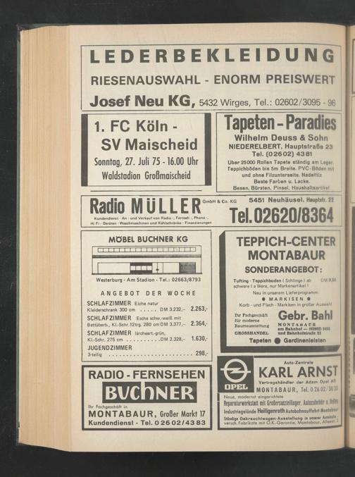 Sonntag, 27. Juli 75 -16.00 Uhr Waldstadion Großmaischeid