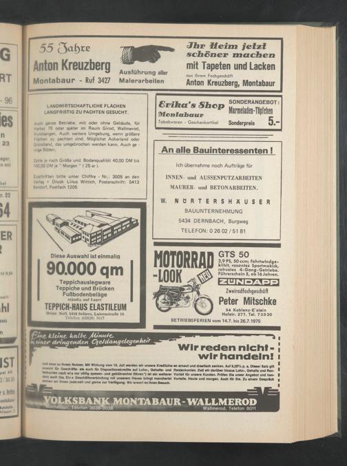 Auch ganze Betriebe, mit oder ohne Gebäude, für Herbst 75 oder später im Raum Girod, Wallmerod, Hundsangen. Auch weitere Umgebung, wenn größere Flächen zu pachten sind. Möglichst Ackerland oder Gründland, das umgebrochen werden kann. Auch ge - ringe Böden.