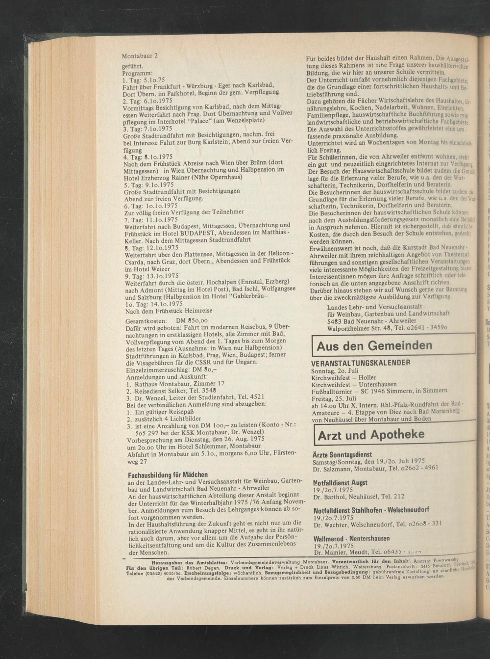 Samstag/Sonntag, den 19./2o. Juli 1975 Dr. Salzmann, Montabaur, Tel. o26o2 - 4961