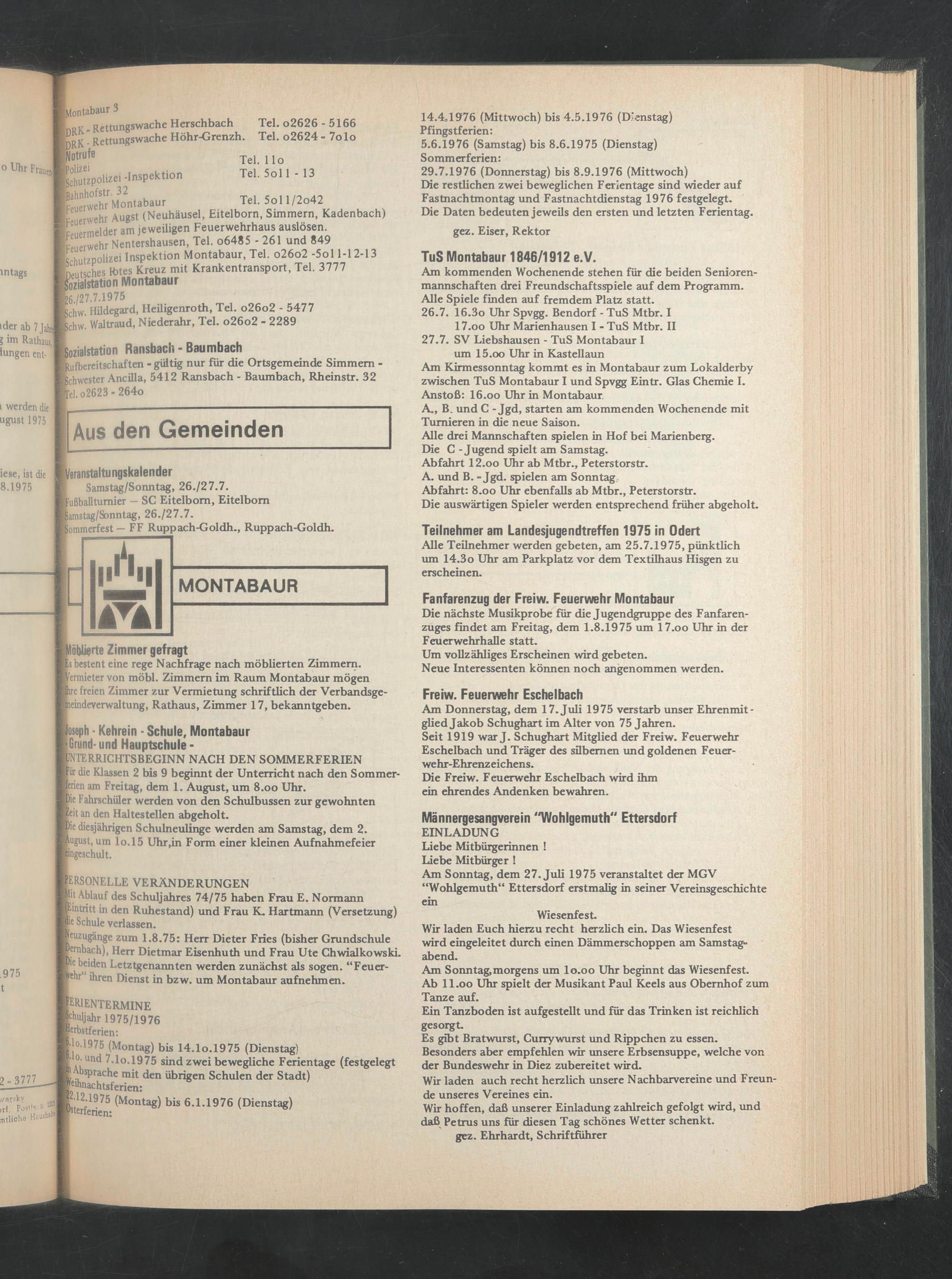 Kehr Nentershausen, Tel. o6485 - 261 und 849 nlhi.tzoolizei Inspektion Montabaur, Tel. o26o2 -5ol 1-12-13 Litsches R)tes Kreuz mit Krankentransport, Tel. 3777 Sozial Station Montabaur k/27.7.1975
