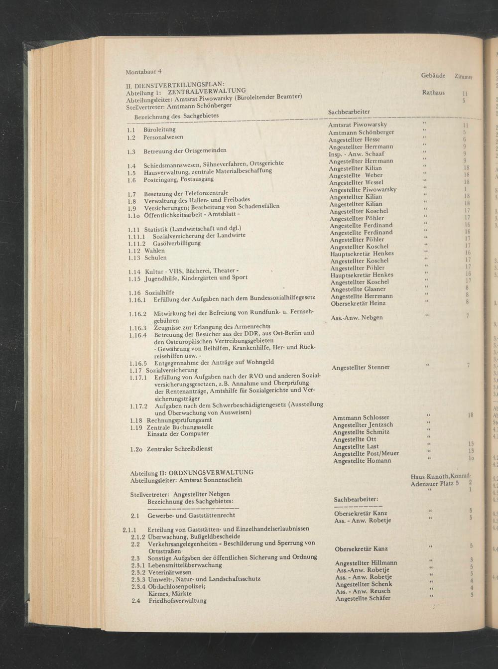 Abteilung II: ORDN UN GS VERWALTUNG Abteilungsleiter: Amtsrat Sonnenschein