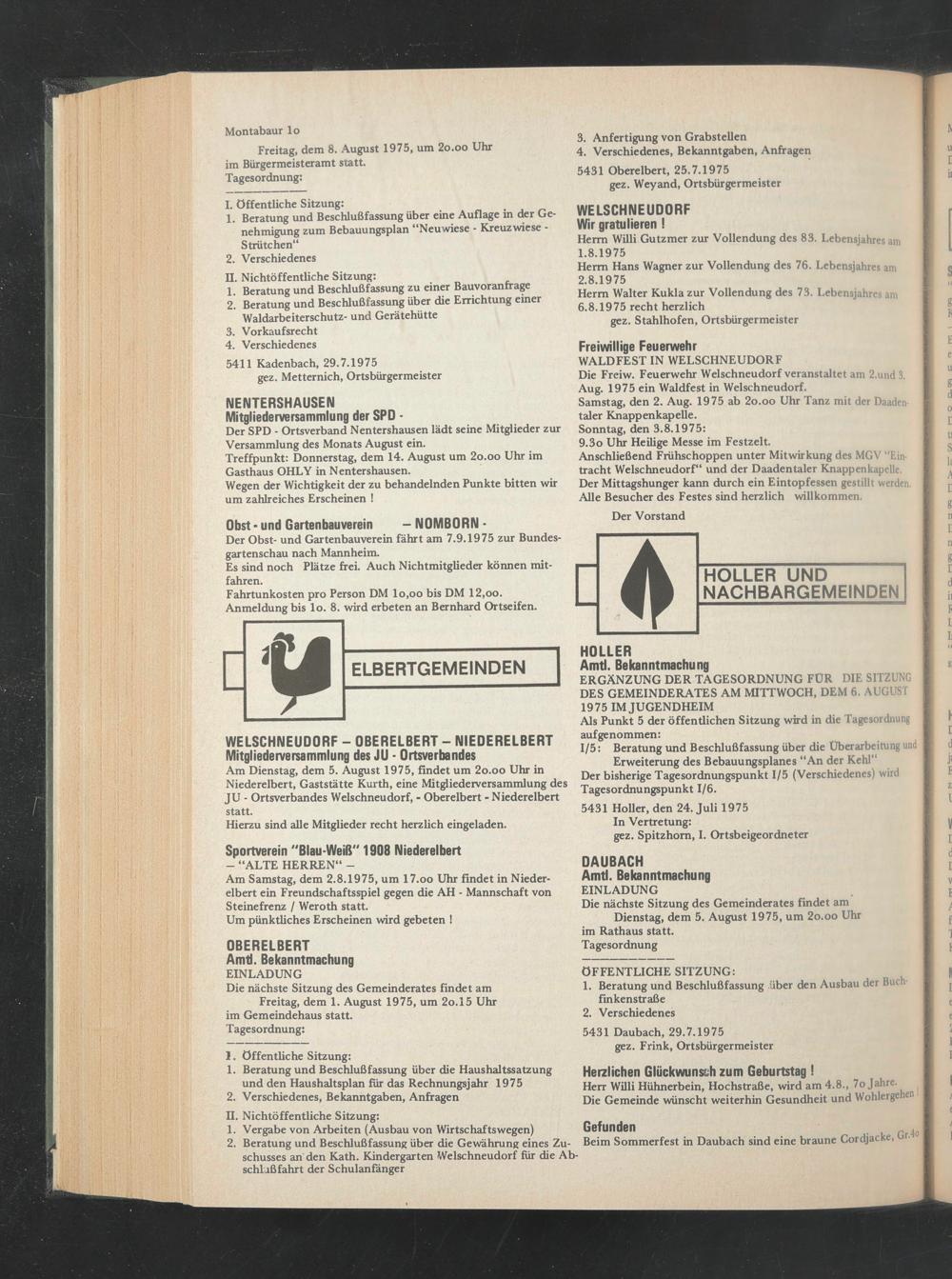 5431 Holler, den 24. Juli 1975 In Vertretung: