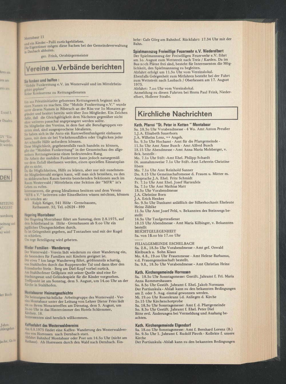 Am 6.8.1975 findet eine Kaffee- Wanderung des Westerwaldver- euis von Horressen nach Dernbach statt.