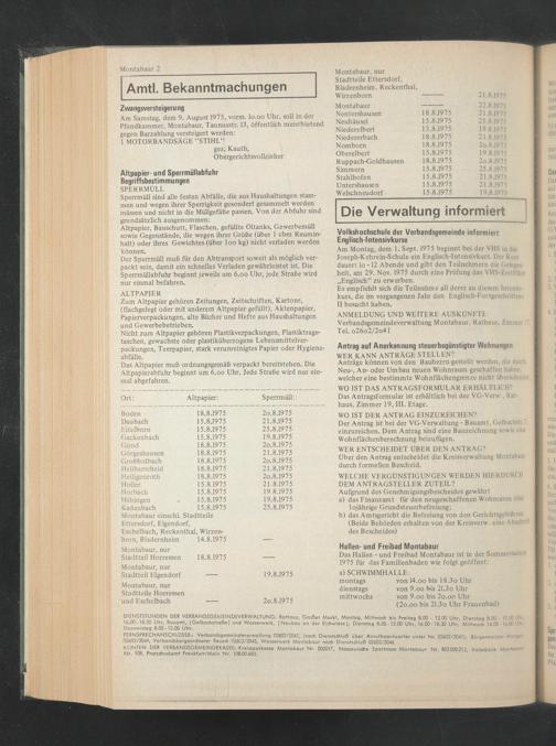 Das Hallen - und Freibad Montabaur ist in der Sommersaison 1975 für das Familienbaden wie folgt geöffnet: