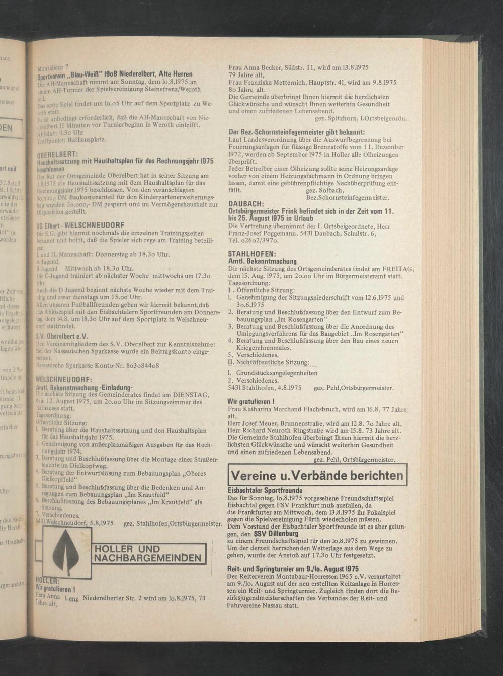 5431 Stahlhofen, 4.8.1975 gez. Pehl,Ortsbürgermeister.