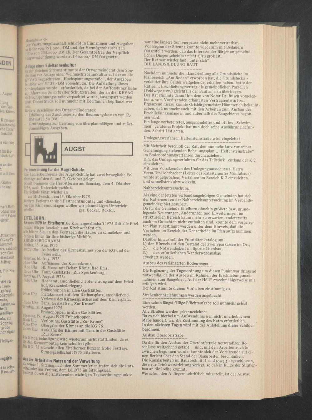 u seiner 1. Sitzung nach den Sommerferien trafen sich die Rats- witgheder am Freitag, dem 1.8.1975 im Sitzungssaal, edingt durch die anstehenden wichtigen Tagesordnungspunkte