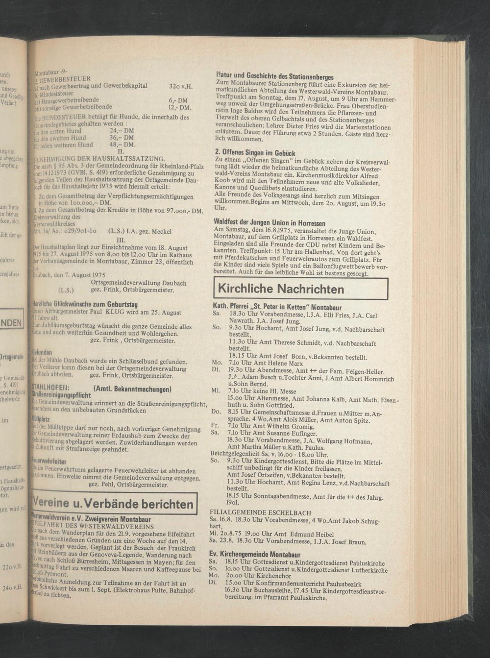 ber Haushaltsplan liegt zur Einsichtnahme vom 18. August (1975 bis 27. August 1975 von 8 .oo bis 12.oo Uhr im Rathaus