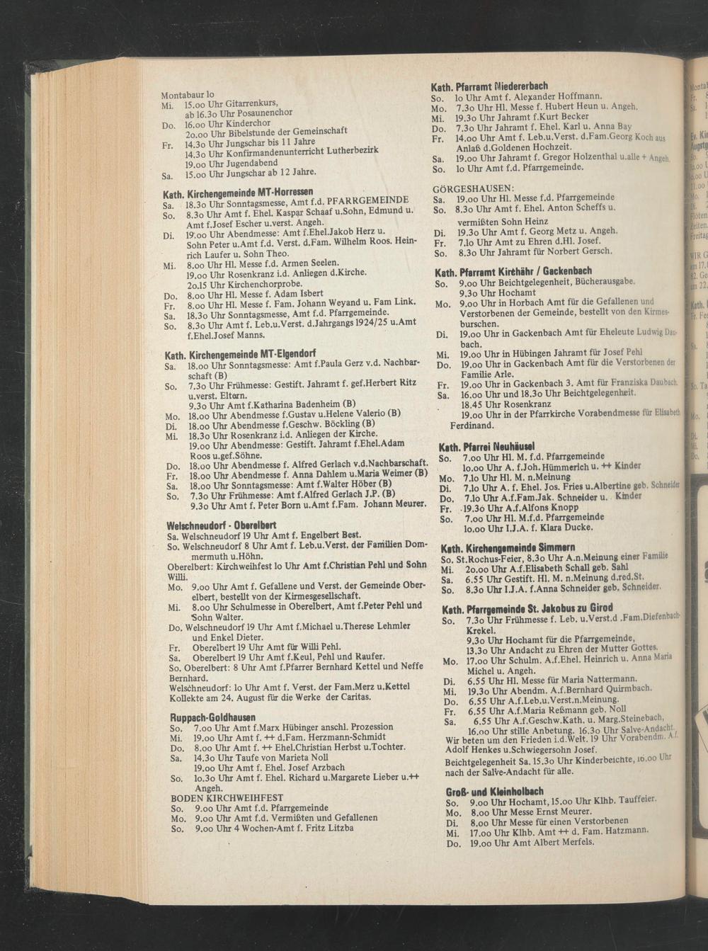 Sa. 14.3o Uhr Taufe von Marieta Noll 19.oo Uhr Amt f. Ehel. Josef Arzbach So. lo.3o Uhr Amt f. Ehel. Richard u.Margarete Lieber u.++ Angeh.
