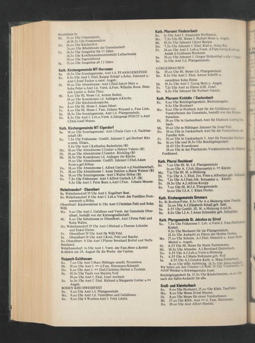 Mi. 19.3o Uhr Jahramt f.Kurt Becker Do. 7.3o Uhr Jahramt f. Ehel. Karl u. Anna Bay Fr. 14.oo Uhr Amt f. Leb.u.Verst. d.Fam.Georg Koch aus Anlaß d.Goldenen Hochzeit.