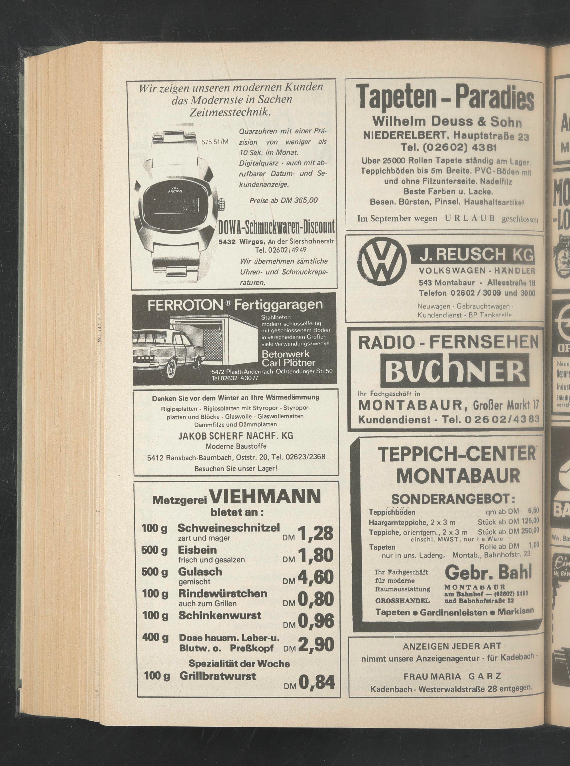 Stück ab DM 250,00 einschl. MWST, nur I a Ware Tapeten Rolle ab DM 1,00