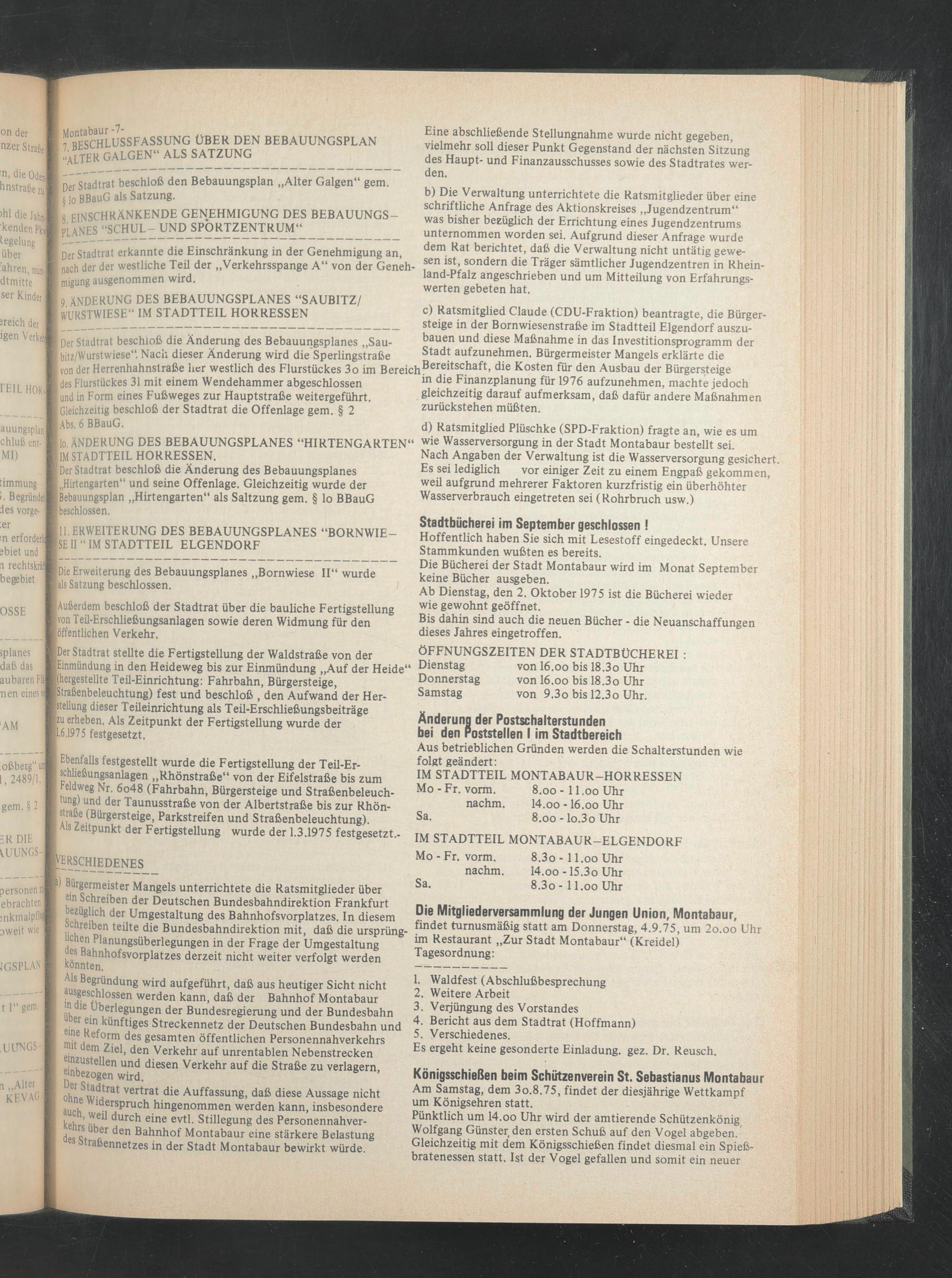 IDer Stadtrat beschloß die Änderung des Bebauungsplanes ] „Hirtengarten“ und seine Offenlage. Gleichzeitig wurde der (Bebauungsplan „Hirtengarten“ als Saltzung gern. § lo BBauG (beschlossen.