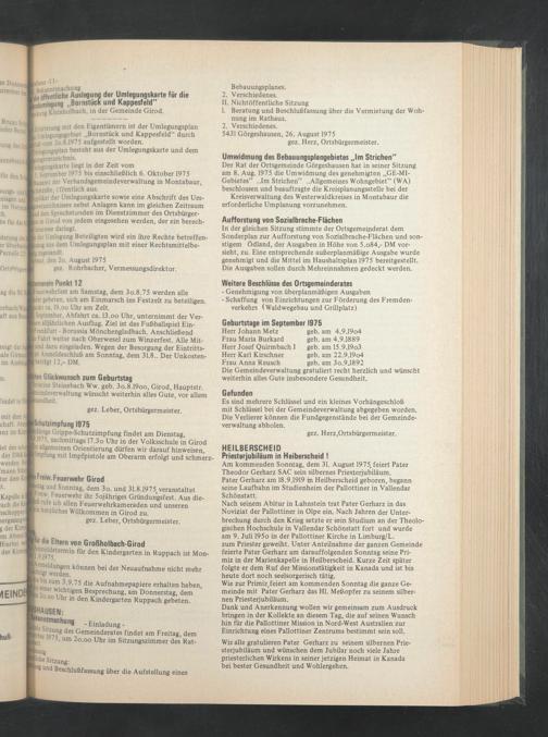 Am kommenden Sonntag, dem 31. August 1975, feiert Pater Theodor Gerharz SAC sein silbernes Priesterjubiläum.