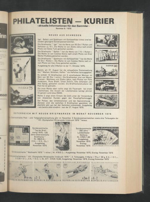 ÖSTERREICH MIT NEUEN BRIEFMARKEN IM MONAT NOVEMBER 1975