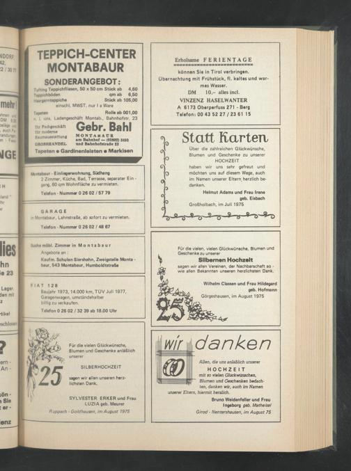 sagen wir allen Vereinen, der Nachbarschaft so - wie allen Bekannten unseren herzlichsten Dank.